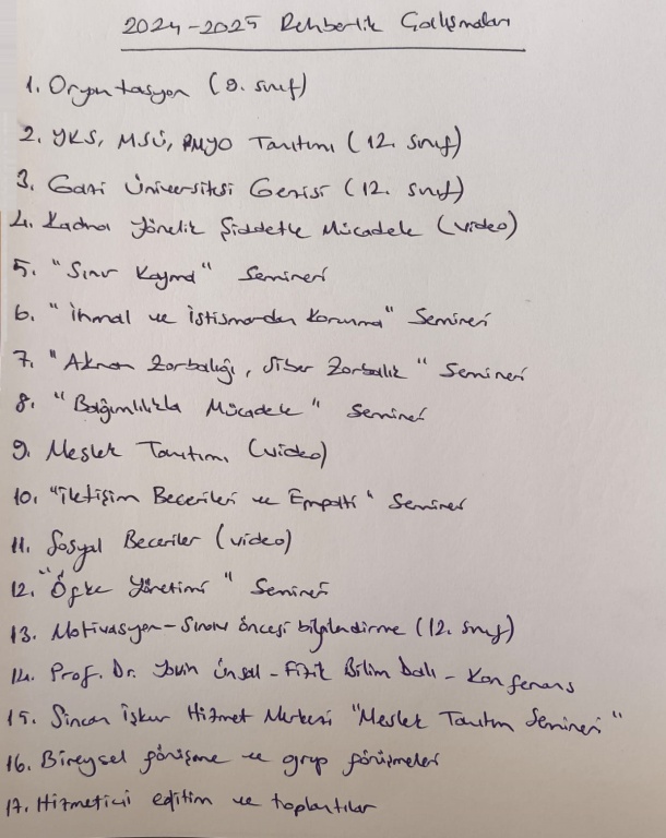 2024-2025 Eğitim-öğretim yılı okulumuz rehberlik çalışmalarından görüntüler